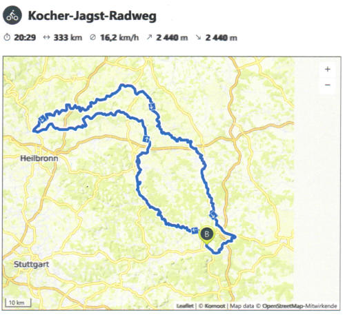 Kocher-Jagst-Rundradweg. Geplante Tagesstrecke ca. 50 km oder weniger.