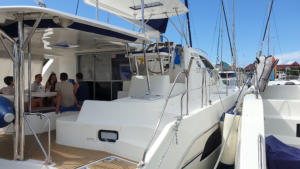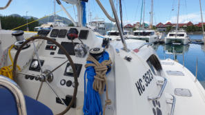 Katamaran "Leopold 44" ist ca. 13 mtr.. lang, das ist länger als die Straßenseite unseres Hauses, und 7 mtr.