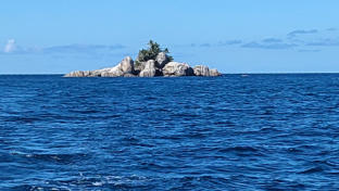 Aber was soll's, wir fahren mit voller Kraft voraus mit leichter Dünung zur nächsten Insel, vorbei an vielen