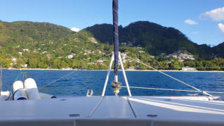 ruhige Wasseroberfläche. Das Wetter wird unruhiger.Entscheidung - wir fahren auf die Hauptinsel Mahé.