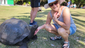 fahren wir mit dem Boot um die Insel La Digue, vorbei an schönen Häusern, Traumstrände und bewaldete