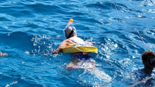 Beinbewegungen machen. Ich sehe die bunten Fische auch vom Deck. Eine große Schildkröte ist ein paar