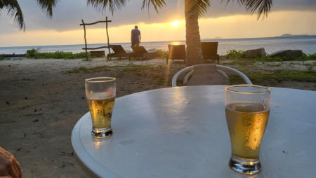 machen wir eine Strandwanderung. Noch ein Bier zum Sundowner.Und dann kommt ein kräftiger